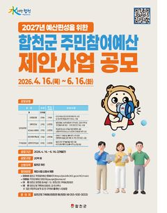 경남 합천군은 2027년도 예산편성을 위한 주민참여예산 제안사업 공모를 6월16일까지 실시한다고 17일 밝혔다. 올해부터 공모 분야를 기존 1개 모델 3개 유형에서 3개 모델 5개 유형으로 확대 개편하며, 기존 공모사업이 시설 확충 등 장소형 사업에 편중되어 다양한 계층의 세밀한 요구를 반영하기 어려웠던 점을 개선하기 위해 공모 모델을 전면 재