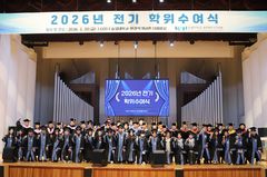 숭실대학교 글로벌미래교육원은 지난달 20일 오후 2시 교내 한경직기념관 대예배실에서 '2026년 전기 학위수여식'을 개최했다고 5일 밝혔다. 이날 수여식에는 졸업생과 학부모, 교직원 및 재학생 등 약 300명이 참석했다. 노길희 교수부장이 사회를 맡았으며, 행사는 ▲찬송 ▲기도(반광준 교목) ▲성경봉독(박지원 교수부장) ▲학위증 수여(이윤재 총장