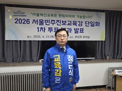 정근식 현 서울시교육감이 진보 진영 서울시교육감 단일 후보로 선출됐다. '2026 서울 민주진보교육감 단일화 추진위원회(추진위)'는 23일 1차 투표 결과를 발표하며 정근식 현 서울시교육감이 최종 단일 후보로 선출됐다고 밝혔다. 정 교육감은 과반 이상을 득표하며 1위를 기록했다. 추진위는 전날 오전 8시부터 이날 오후 6시까지 이틀간 1차 투