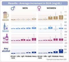 애주가들을 괴롭히는 통풍은 음주와 밀접한 관련이 있는 질환으로 알려져 있다. 최근 국내 연구에서 남녀 성별에 따라 통풍 위험을 높이는 술의 종류가 다를 수 있다는 것이 확인됐다. 14일 삼성서울병원에 따르면 강미라 건강의학본부 교수, 김경아 의학통계센터 교수·홍성준 박사, 안중경 강북삼성병원 류마티스내과 교수 공동 연구팀이