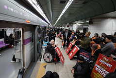 전장연, 광화문·남영역서 동시 탑승 시위…출근길 열차 지연