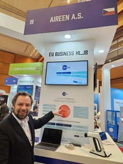 "당뇨병성 안과질환을 확인하려면 일반적으로 점안액을 넣고 의료진이 직접 검사를 진행해야 합니다. 통상 10~15분이 소요되지만, 우리 솔루션을 활용하면 3분 이내로 검사가 가능하며 점안액도 필요 없습니다.: 지난달 20일 서울 코엑스에서 열린 키메스 2026(KIMES 2026) 내 EU 비즈니스 허브에서 만난 이리 쿠히나 아이린(Aire