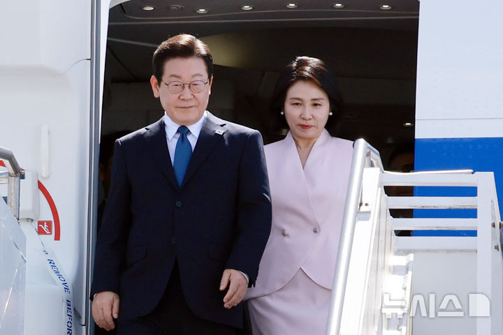 이재명 대통령이 26일(현지시간) 미국 필라델피아에서 방미 마지막 일정을 시작했다. 이 대통령 내외는 현지 시간으로 26일 오후 1시께 미국 필라델피아 국제공항에 도착했다. 이 대통령은 검은색 양복에 푸른색 넥타이를, 김혜경 여사는 분홍빛 투피스를 착용했다. 우리측에서는 이상호 주뉴욕총영사대리, 이재용 주필라델피아출장소장, 김경택 필라델피아
