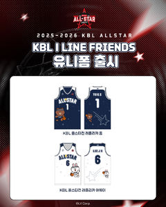 한국농구연맹(KBL)은 공식 상품화 사업권자인 케이엔코리아가 운영하는 '스포츠일러스트레이티드(SI)'에서 제작한 2025~2026시즌 LG전자 프로농구 올스타전 유니폼과 기념 상품을 판매한다고 13일 밝혔다. 이번 올스타전 유니폼은 IPX(구 라인프렌즈)의 글로벌 캐릭터 '라인프렌즈(LINE FRIENDS)'의 브라운(BROWN)과 코니(CONY)