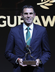 프로축구 전북 현대의 역사적인 10번째 리그 우승을 이끈 거스 포옛 감독이 2025시즌 최고의 지도자로 뽑혔다. 포옛 감독은 1일 서울 서대문구의 스위스그랜드호텔에서 열린 하나은행 K리그 2025 대상 시상식에서 K리그1 올해의 감독상을 받았다. 100점 만전 환산 점수로 75.63점(감독 9표, 주장 8표, 미디어 111표)을 기록한 포옛