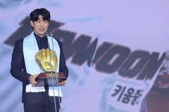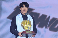 2025시즌 뒤 메이저리그(MLB) 도전에 나선 송성문(키움 히어로즈)이 선수들에게서 올해 최고의 선수로 평가받았다. 송성문은 1일 서울 광진구 그랜드 워커힐 서울에서 열린 '2025 컴투스프로야구 리얼글러브 어워드'에서 대상 격인 '올해의 선수'로 호명됐다. 리얼글러브 어워드는 한국 프로야구 선수들이 직접 투표를 통해 동료 선수들의 활약을