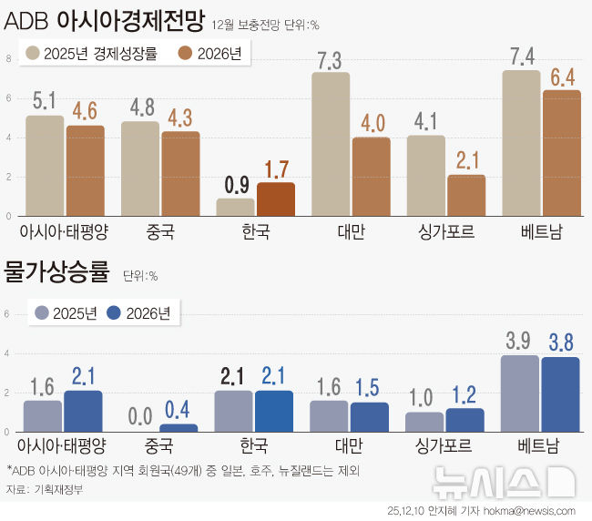 ADB, 한국 경제성장률 0.9%로 상향…물가 2.1%