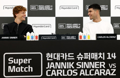 남자 테니스 세계 랭킹 1위 카를로스 알카라스(스페인)와 2위 얀니크 신네르(이탈리아)가 국내에서 벌이는 맞대결을 앞두고, 팬들에게 테니스의 재미를 알려주겠다고 다짐했다. 알카라스와 신네르는 9일 오후 3시 서울 영등포구의 현대카드 본사에서 진행된 '현대카드 슈퍼매치 14 얀니크 신네르 vs 카를로스 알카라스' 사전 기자회견을 통해 한국에서 격돌하