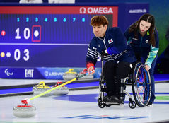 2026 밀라노·코르티나담페초 동계패럴림픽 한국 선수단 중 가장 먼저 경기에 나선 휠체어컬링 믹스더블 팀이 첫 승리를 신고했다. 백혜진-이용석(이상 경기도장애인체육회) 조는 5일(한국 시간) 이탈리아 코르티나담페초의 코르티나 컬링 올림픽 스타디움에서 열린 대회 컬링 믹스더블 예선 2차전에서 영국의 조애나 버터필드-제이슨 킨 조를 14-3으로 완파했다