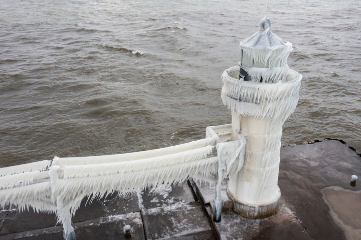 추위에 등대도 '꽁꽁'