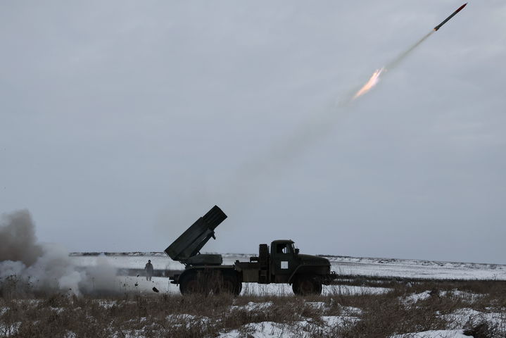 러 진지로 발사되는 우크라군 다연장로켓포