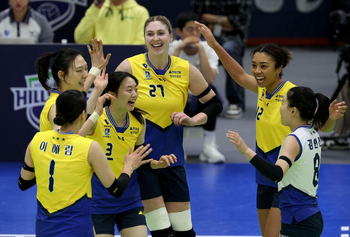 환호하는 현대건설 배구단 선수들