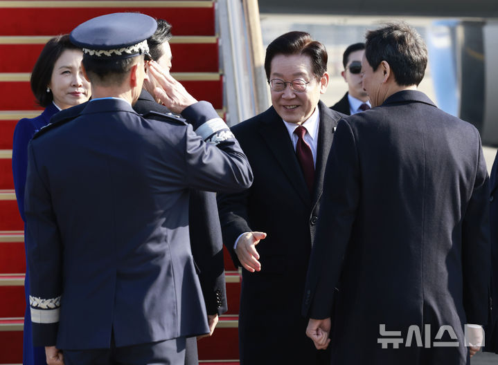 환송 인사들과 인사하는 이재명 대통령