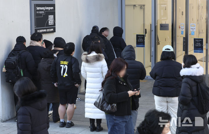 매장 안으로 들어가기 위해 줄 서는 시민들