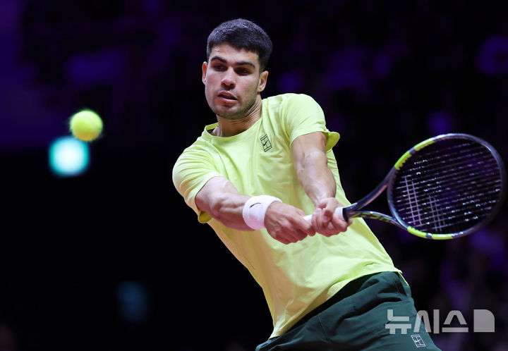 힘차게 스트로크 치는 카를로스 알카라스