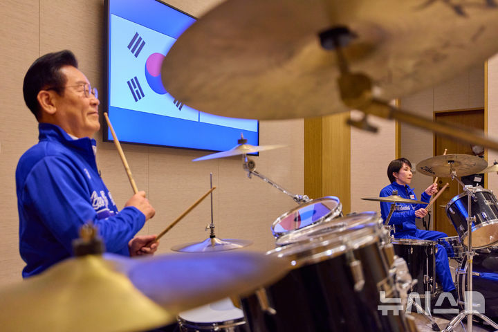 즉석 드럼 합주 선보이는 이재명 대통령과 다카이치 총리