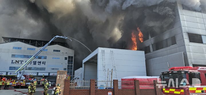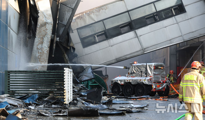 대전 자동차 부품공장 화재 진압하는 무인소방로봇