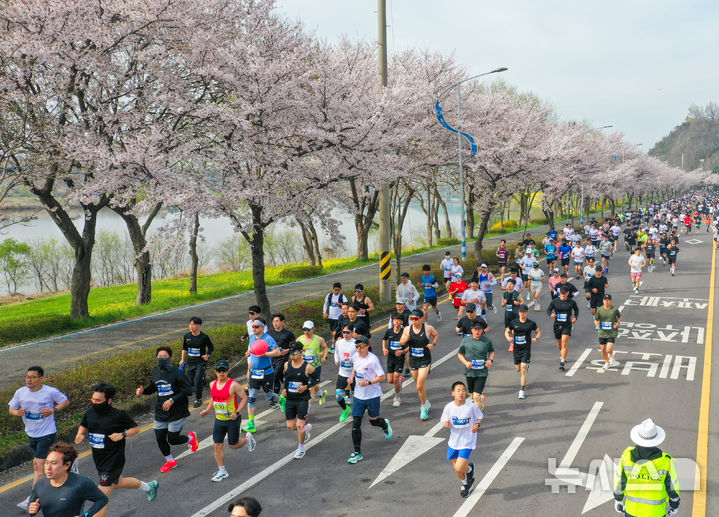 벚꽃 아래서 즐기는 나주 영산강 마라톤