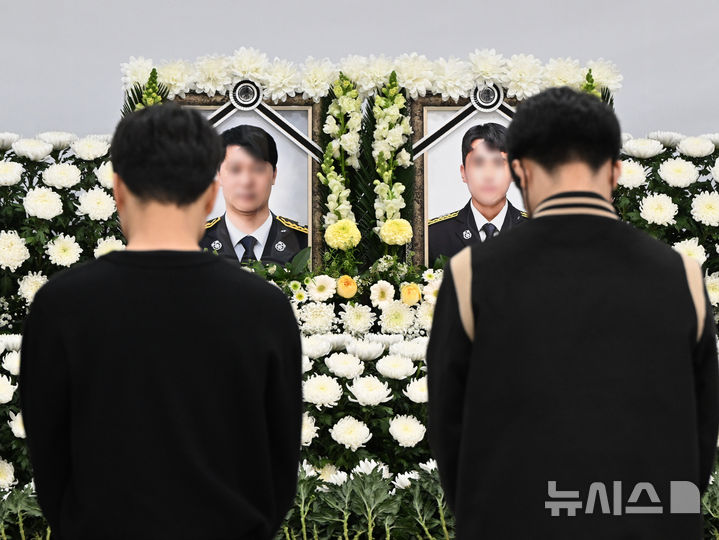 완도 순직 소방관 앞에서 묵념하는 학생들