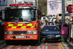'소방차 출동로 확보를 위해' 긴급출동 방해 차량 강제처분 훈련 [뉴시스Pic]