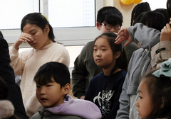 일년 중 가장 춥다는 '대한'(大寒)을 하루 앞둔 19일 부산 남구 유엔기념공원을 찾은 시민들이 꽃망울 터트린 '봄의 전령' 홍매화를 구경하고 있다.