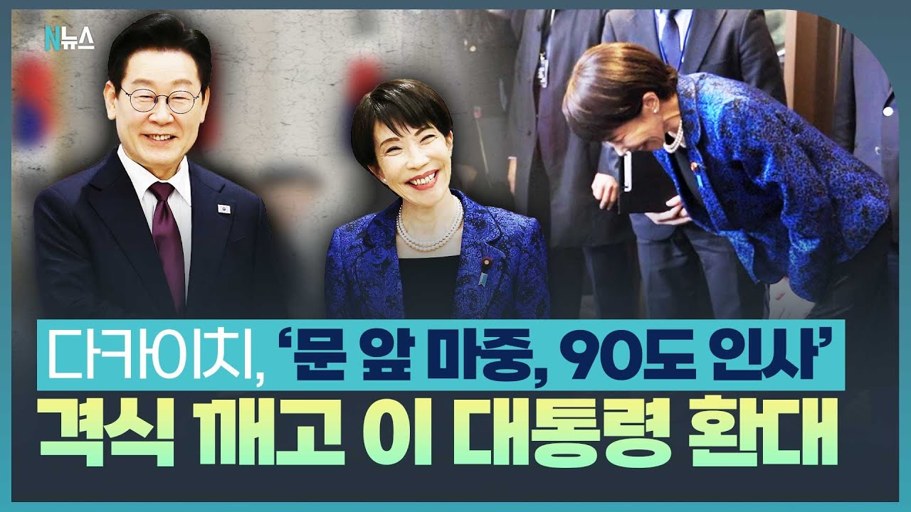 "문 앞 마중, 90도 인사' 격식 깨고 이재명 대통령 환대하는 다카이치 총리