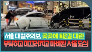 서울에 내린 첫눈 대설주의보, 곳곳에 퇴근길 대란 이어져