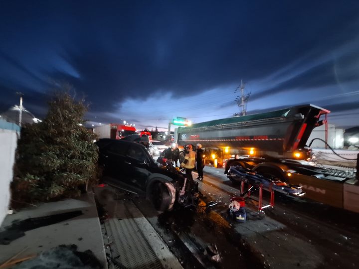 여수국가산단 도로서 SUV·통근버스 충돌…50대 심정지
