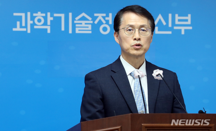 [세종=뉴시스] 강종민 기자 = 최원호 우주항공청설립추진단장이 21일 세종시 정부세종청사에서 우주항공청 설립에 대한 온라인 설문조사 결과를 발표하고 있다. 설문조사 결과 국민의 79.6%가 우주항공청 설립은 필요하다고 답했다. 2023.03.21. [email protected]