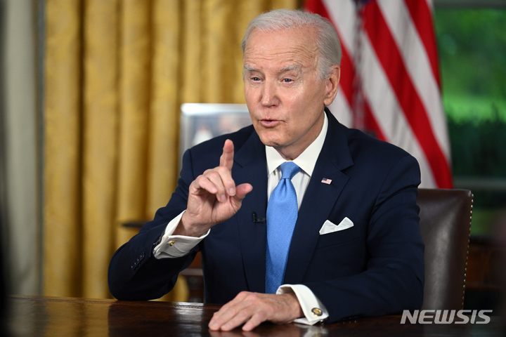 [워싱턴=AP/뉴시스] 조 바이든 미국 대통령이 2일(현지시각) 백악관 집무실에서 '재정책임법 2023'이 통과해 사상 최초의 디폴트(채무불이행)를 피한 데 대한 대국민 연설을 하고 있다. 바이든 대통령은 "이번 초당적 합의는 미국 경제와 미국인의 큰 승리"라고 말했다. 2023.06.03.