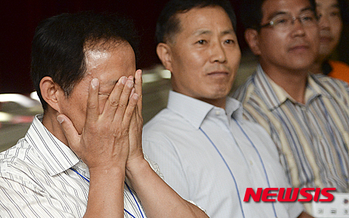 【서울=뉴시스】최진석 기자 = 삼풍백화점 붕괴사고 20주기인 29일 오후 서울 중구 서울유스호스텔에서 ‘우리는 20년 동안 무엇을 했는가?’를 주제로 열린 삼풍백화점 붕괴현장 구조대원들과 대화의 시간에 참석한 삼풍백화점 붕괴사고 당시 현장 출동 구조대원들이 사고 영상을 보며 안타까운 표정을 짓고 있다. 2015.06.29.