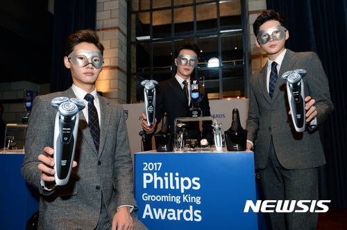 【서울=뉴시스】임태훈 기자 = 16일 오전 서울 강남구 CGV 청담씨네시티 프라이빗 시네마에서 열린 영화 '더 킹' 개봉 기념 '필립스 그루밍 킹 패키지'행사에서 모델들이 필립스 9000 시리즈 제품을 선보이고 있다.