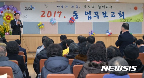 【서울=뉴시스】17일 이창우 동작구청장이 서울 동작구 사당1동 주민자치센터에서 구민들에게 구정 주요 사업 설명을 마치고 구민들과 토론을 하고 있다. 2017.01.17. (사진=동작구 제공)
