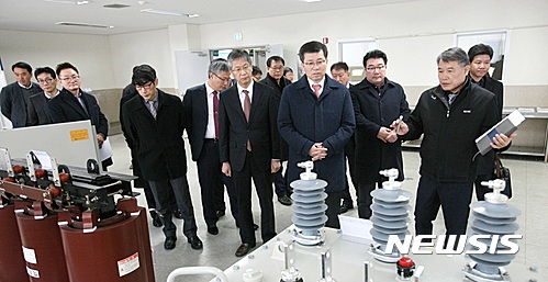 【대전=뉴시스】김양수 기자 = 정양호 조달청장은 1일 경기도 성남에 위치한 한국전기공업협동조합을 방문해 배전반과 변압기, 발전기 등 전력장치를 생산하는 중소기업 대표들과 간담회를 갖고 경영현장의 의견을 청취한 뒤 기술연구소를 방문, 신제품 등을 둘러봤다.2017.02.01(사진=조달청 제공)