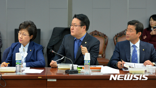 【서울=뉴시스】배훈식 기자 = 2일 오전 서울 여의도 국회 의원회관 제2세미나실에서 열린 국민의당 제4차 정책강화 워크숍에 참석한 최도자(왼쪽부터), 송기석, 정인화 의원이 강의를 듣고 있다.