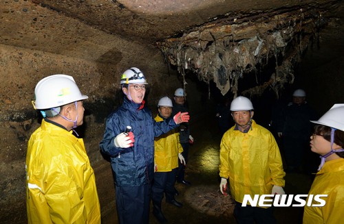 【서울=뉴시스】20일 오후 이창우 동작구청장이 주민들과 함께 재난취약시설물 안전점검을 위해 노량진수산시장 현대화 시행에 따라 폐쇄된 철도 하부 하수박스를 점검하고 있다. 2017.03.20. (사진=동작구 제공)
