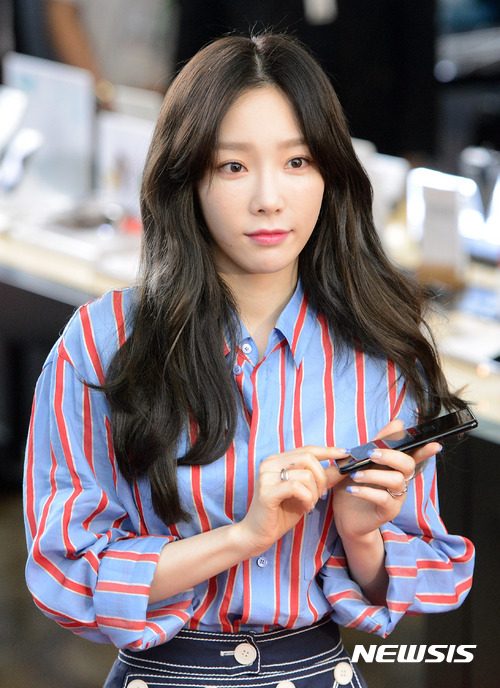 【서울=뉴시스】김선웅 기자 = 18일 서울 종로구 광화문 KT스퀘어에서 열린 삼성 갤럭시 S8 개통행사에서 소녀시대 태연이 제품을 들고 포즈를 취하고 있다. 2017.04.18.
