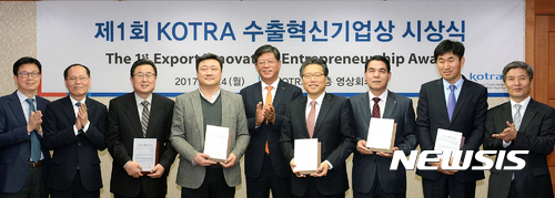 【서울=뉴시스】KOTRA(사장 김재홍)는 24일 서울 서초구 KOTRA 본사에서 ‘제1회 KOTRA 수출혁신기업상’ 시상식을 개최했다.