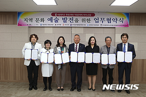 【청주=뉴시스】김재광 기자 = 서원대학교 평생교육원은 26일 글로벌관 세미나실에서 청주예총 등 6개 음악단체와 업무협약을 했다고 밝혔다.2017.04.26.(사진=서원대 제공)