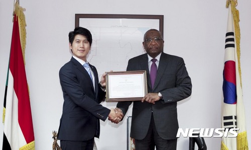 【서울=뉴시스】한문화진흥협회는 정사무엘 한문화외교사절단장이 11일 서울 용산구 주한 수단대사관에서 모하메드 압델랄 주한 수단 대사로부터 대한민국-수단 간 문화교류에 기여한 공로로 감사장을 받았다고 전했다. 2017.05.11. (사진=한문화진흥협회 제공)