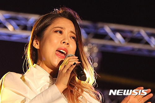 【구미=뉴시스】박홍식 기자 = 19일 오후 경북 구미대학교 운동장에서 열린 '제26회 가맛벌 축제'에서 가수 양파가 자신의 히트곡 '아디오'을 열창하고 있다. 2017.05.20