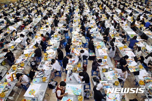 【서울=뉴시스】 19일 서울 노원구 삼육대학교에서 열린 '2017 전국고교생 미술디자인 실기대회'에 참여한 학생들이 그림을 그리고 있다. 2017.06.19. (사진=삼육대학교 제공)