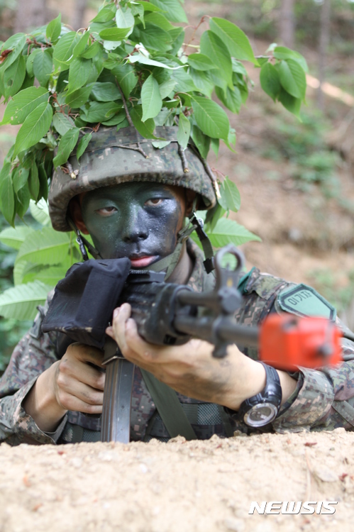 【화천=뉴시스】한윤식 기자 = 육군 2군단은 6·25전쟁 67주년을 맞아 24일부터 이틀간 강원 화천군 일원에서 실시한 2017년 통일훈련에서 용사들이 거점방어 전투사격을 하고 있다. 2017.06.25.