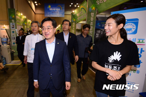 【고양=뉴시스】김선웅 기자 = 김동연 경제부총리 겸 기획재정부 장관이 30일 오후 경기 고양시 킨텍스에서 열린 제5회 협동조합의 날 및 협동조합 박람회에 참석, 부스를 둘러보고 있다. 2017.06.30.