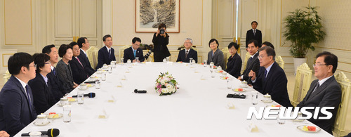 김상곤, 김은경 장관과 환담하는 문재인 대통령