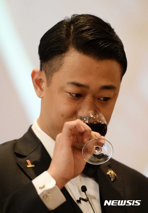 【서울=뉴시스】고범준 기자 = 11일 서울 강남구 임피리얼 팰리스 호텔에서 열린 2017 제16회 한국 소믈리에 대회 결선에서 박민욱 소믈리에가 블라인드 테이스팅을 하고 있다.