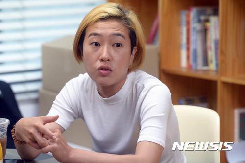 【서울=뉴시스】장세영 기자 = 서바이벌 연극 '창조경제-공공극장편'과 이 경쟁 시스템 연극에 참여한 신야 연출 신아리가 14일 오후 서울 중구 남산예술센터에서 뉴시스와 인터뷰를 하고 있다. 2017.07.16.