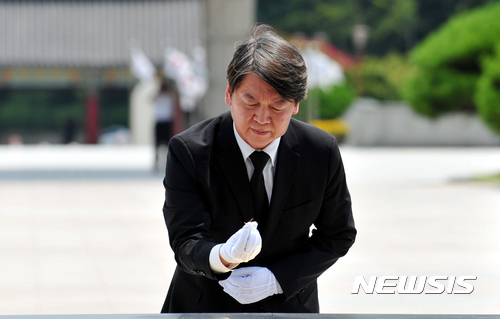 【광주=뉴시스】류형근 기자 = 국민의당 8·27 전당대회 당 대표 선거에 출마한 안철수 전 대표가 10일 오후 광주 북구 운정동 국립5·18민주묘지를 찾아 오월영령에 참배하고 있다. 2017.08.10.