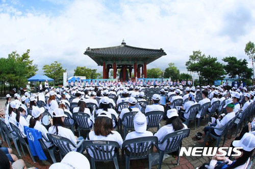 【서울=뉴시스】 21일 경기도 파주시 임진각 평화의 종각 광장에서 피스로드(Peace Road) 2017 코리아 통일대장정' 종주 완료식이 열리고 있다. 2017.08.21. (사진=남북통일운동국민연합 제공)