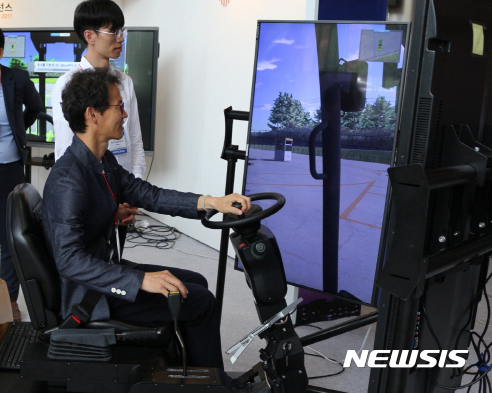【천안=뉴시스】이종익 기자 = 충남 천안의 코리아텍(총장 김기영) 온라인평생교육원이 7일 오후 서울 코엑스에서 열린 '제 11회 인적자원개발 컨퍼런스'에서 일반 방문객 등을 대상으로 가상현실(VR) 기반 가상훈련 콘텐츠를 시연하고 있다. 2017.09.08. (사진=코리아텍 제공)